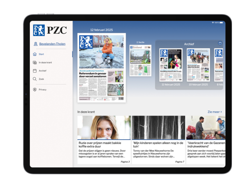Met de app ‘PZC - Digitale krant' heeft u een exacte kopie van de papieren krant op uw beeldscherm. Het beste van beide werelden: u leest de krant zoals deze is gedrukt, maar kunt ook gemakkelijk artikelen delen, opslaan en offline lezen.